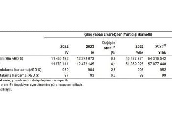 Turizm geliri Ekim, Kasım ve Aralık aylarından oluşan IV. çeyrekte bir evvelki yılın tıpkı çeyreğine nazaran %6,8 artarak 12 milyar ...