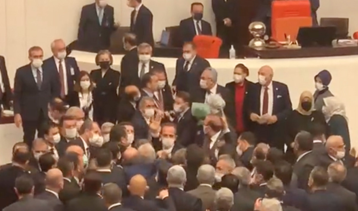 Milletvekillerinin adeta birbirine girdiği kavga, partilerin grup başkan vekillerinin tarafları yatıştırmasıyla sona erdi.